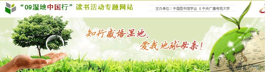 “09湿地中国行”是一项发动全国电大师生、中小学师生以及社会青年广泛参与的公益性读书活动,旨在通过主题明确、意义深远、互动性强、知行统一的读书活动,提高全社会对湿地这一重要地球自然生态系统的认识,达到提高全民族,特别是青少年的生态环保意识和普及生态环保知识的目的。