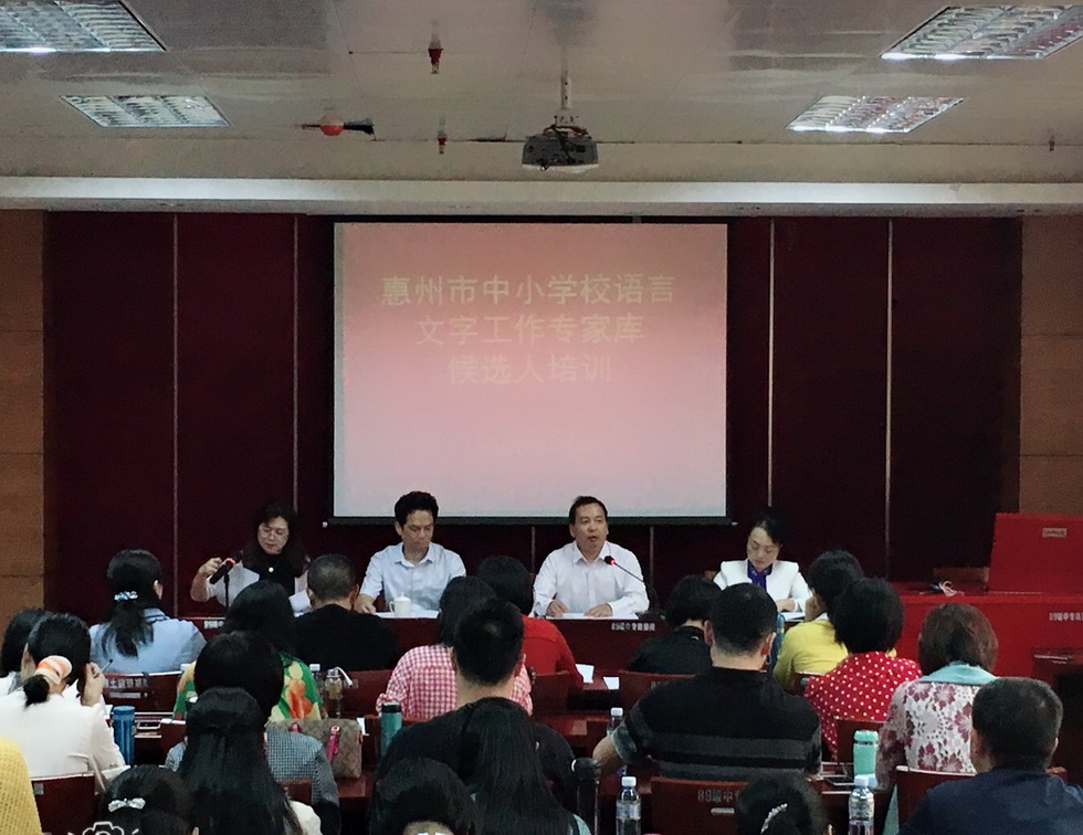 10月22日上午,2018年惠州市中小学校语言文字工作专家库候选人培训在惠州市广播电视大学开班,市教育局党组成员、副局长邓凡用出席并讲话,市电大、市教育局继续教育科等相关负责人以及全体参训学员约65人参加开班仪式。