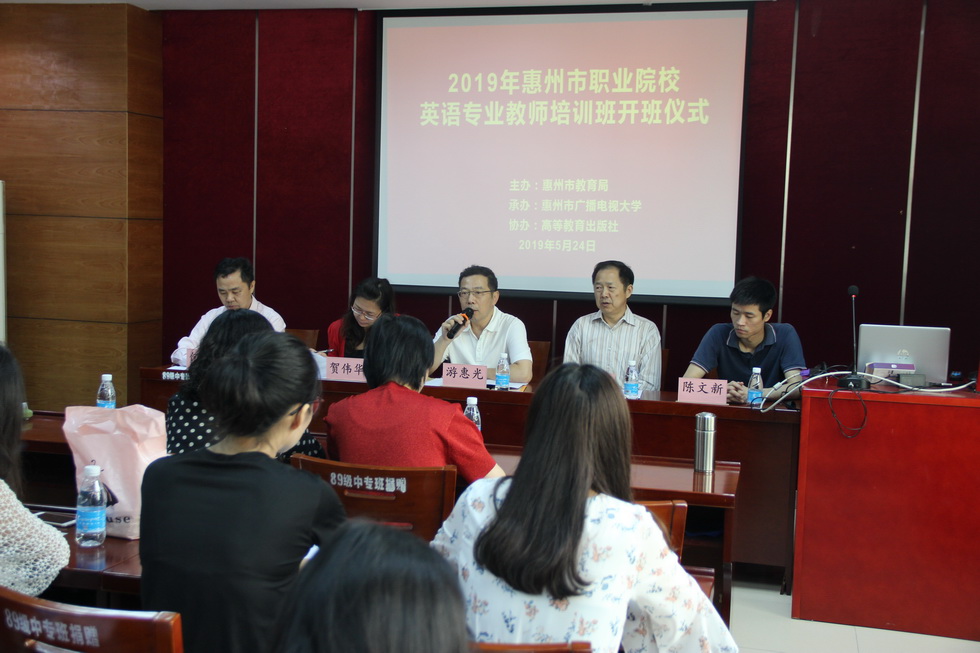 5月24日,由惠州市教育局主办、惠州市电大承办、高等教育出版社协办的全市市职业院校英语专业教师培训班在惠州电大综合楼弘毅厅顺利举行,来自25所学校的96名教师参加了培训。