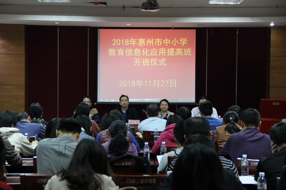 11月27日至30日,惠州市中小学教育信息化应用提高班在市广播电视大学举行。县(区)教育局信息化应用具体负责人和学校微课制作、机器人活动和创客等的指导老师等100多人参加了培训。