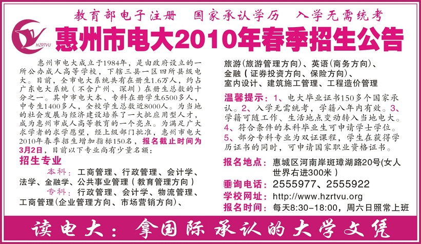 下一篇:2010年秋季本科专科招生简章