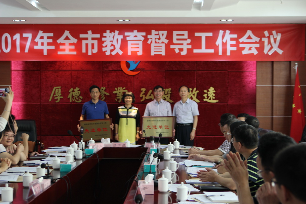 范卫萍副局长为获得2016年教育督导工作先进单位的惠阳区教育局、龙门县科教局颁奖。