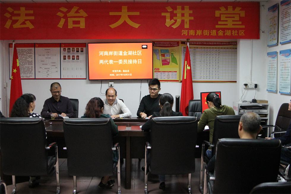 10月31日,市党代表、惠州市广播电视大学党委书记、校长温金龙到市区河南岸街道金湖社区开展“两代表一委员”接待日活动。