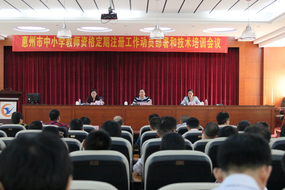 10月25日下午,惠州市中小学教师资格定期注册工作动员部署暨技术培训会在惠州市广播电视大学综合楼12楼报告厅召开,市教育局党组成员、副局长邓凡用出席会议并讲话,各县(区)教育局和市直学校分管教师资格定期注册工作的领导、部门负责人、具体工作人员等共计90余人参加会议。