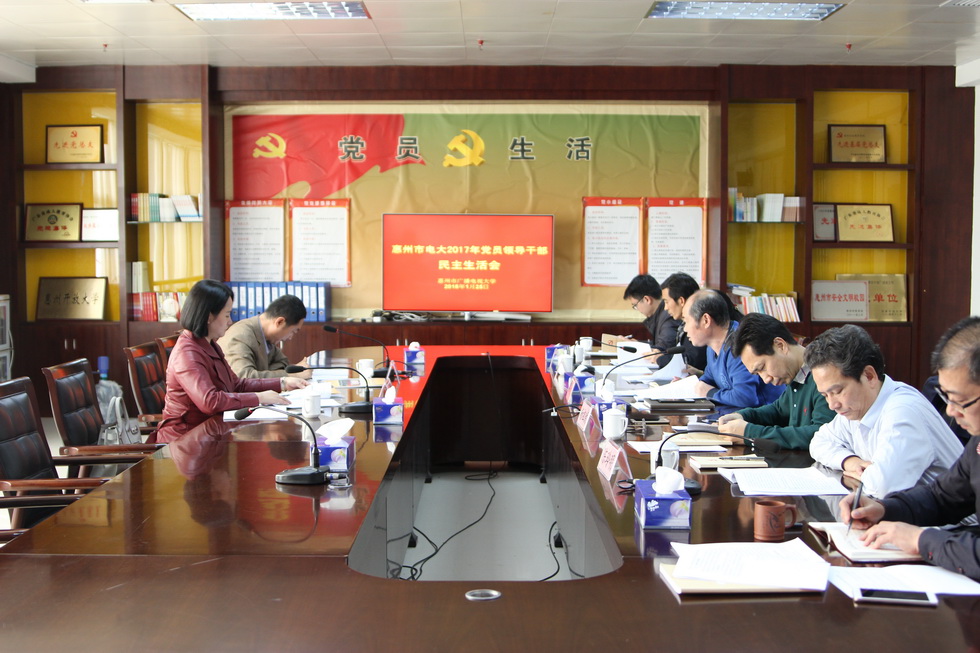 根据市委的统一部署和要求,惠州市电大于2018年1月25日下午召开了2017年度党员领导干部民主生活会。学校党委书记、校长温金龙主持。党委副书记、副校长、纪委书记杨祖武,副校长范慧新、陈玲明、李建国参加了会议,其他非领导班子的党委委员列席了会议。市教育局副局长毛少琼,市教育局大中专办副主任宋晓峰等同志到会指导。
