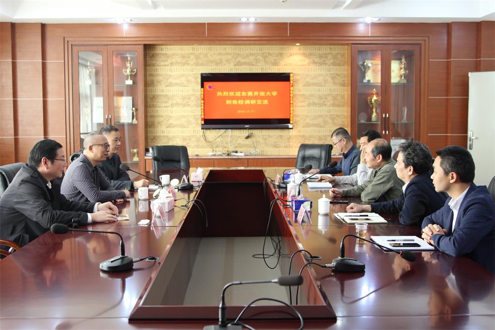 3月7日上午,东莞开放大学校长阳涌一行3人到惠州市广播电视大学进行调研交流,受到党委书记、校长温金龙,副校长陈玲明、李建国等校领导的热烈欢迎。