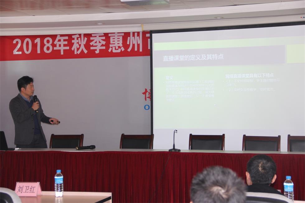 会议期间,惠东开放大学詹斌作了题为《直播课堂在开放教育教学中的运用》专题讲座、惠州电大黄小爽作了《开放教育网上教学支持服务一体化平台建设》专题讲座、博罗开大杨玲作了《开放教育坏境下学前教育专业教学存在的问题和对策》专题讲座、惠阳开大张晓彬作了《远程教育学生管理方法研究》专题讲座。惠州电大李晓副科长作了2018年度电大系统教学及科研成果总结。