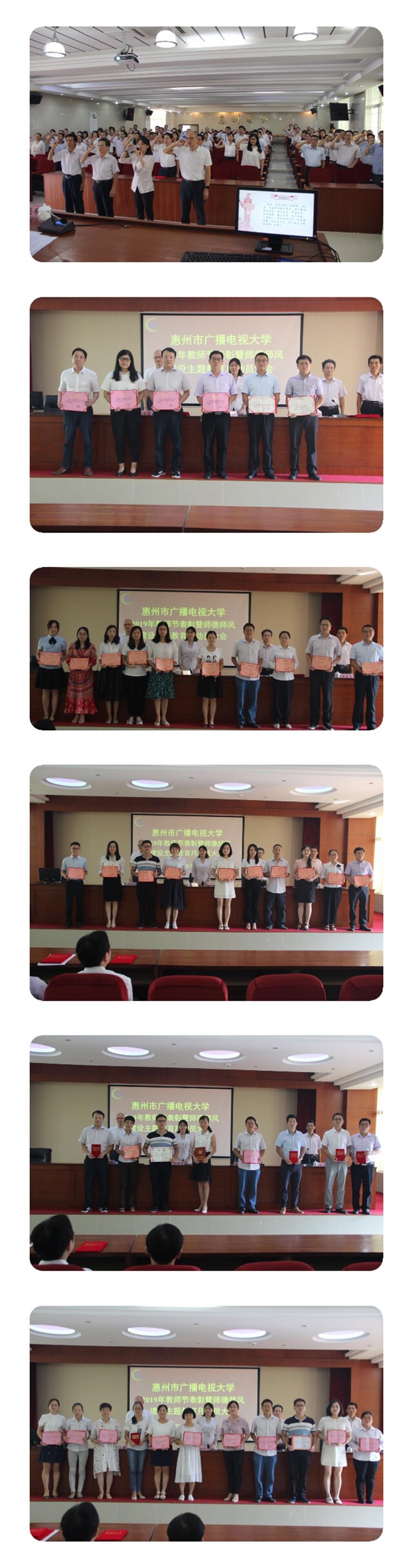9月10日下午,惠州电大举行2019年教师节表彰暨师德师风建设主题教育月动员大会。校领导张海燕、陈玲明、吴希东、李建国等出席会议,全体教职工以及150名学生代表参加大会。大会由副校长李建国主持。