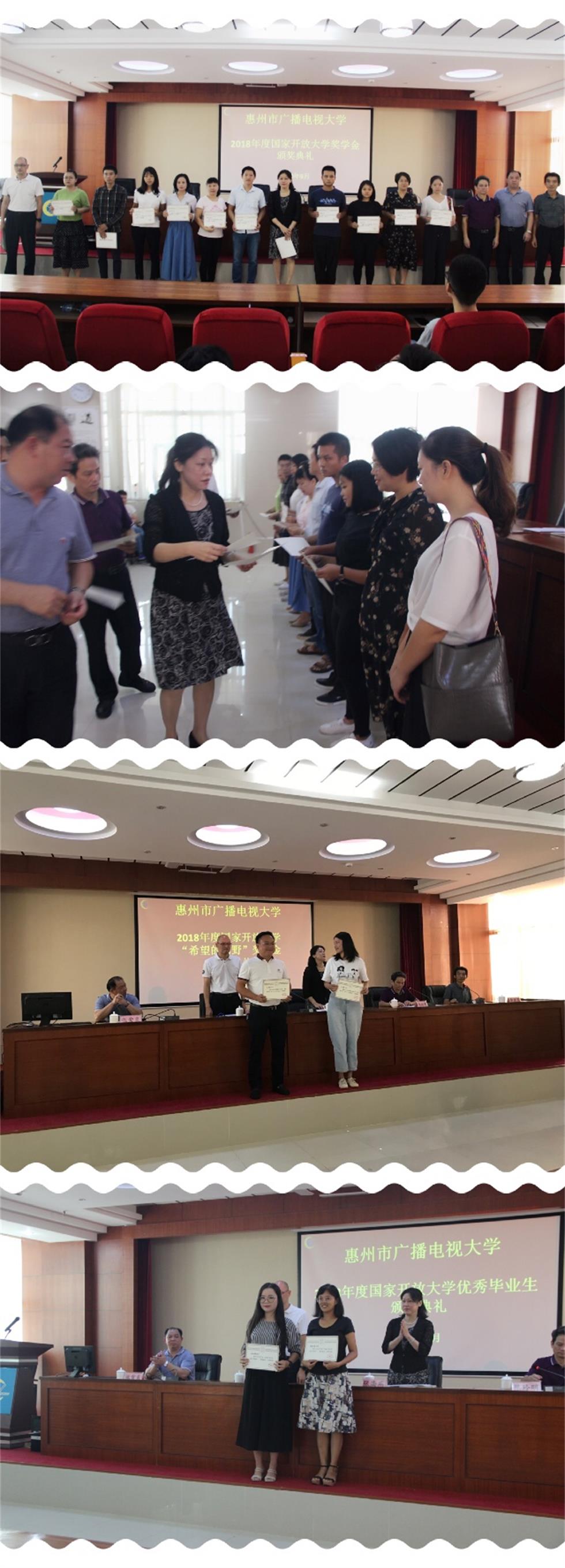 陈玲明副校长宣读了2018年度国家开放大学奖学金、希望的田野奖学金、优秀毕业生表彰的决定,校领导为获奖同学颁发了荣誉证书,并向他们表示祝贺。
