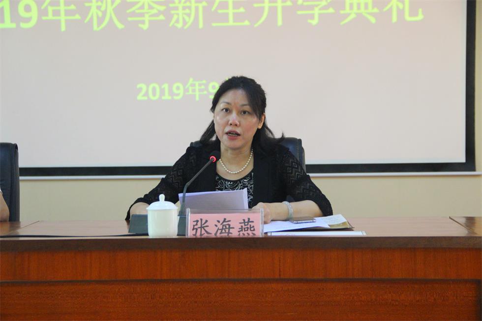 张海燕校长对新生表示热烈欢迎,向同学们介绍了惠州电大的概况,对同学们主动学习、充实自我、提升自我给予了充分肯定,并提出了三点建议:一是沉下心来,将学习贯穿终身。为了适应新时代对工作、生活提出的新要求,同学们要不断接受新知识,以适应快速发展的形势。只有不断学习,不断充电,保持天天向上的心,才能适应不断前进发展的社会。二是要处理好学习与工作、生活的关系。要以智慧和更强的定力,解决好工作与学习的矛盾和生活与学习的关系。社会的竞争既是人才的竞争,也是学习速度的竞争。要通过这次学习机会,不断提升个人能力和综合素质,增强社会竞争能力,服务社会,实现人生价值。三是要不忘初心,砥砺前行,在新时代勇敢追梦。希望同学们在中国梦的引导下,找准方向、脚踏实地、迎难而上,争做新时代里勇敢的追梦人。