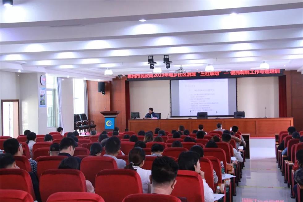 为了深入开展城乡社区治理工作,全面提升城乡社区治理水平,完善城乡治理体系,增强社区基层社区工作人员解决社区问题的能力。由惠州市民政局主办、惠州市社会工作者协会承办的2019年城乡社区治理“三社联动”——便民调解工作培训于10月29日在惠州市广播电视大学顺利开展。我市社区居委会负责人民调解工作的委员及社工近200人参加本次培训。