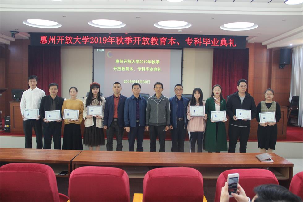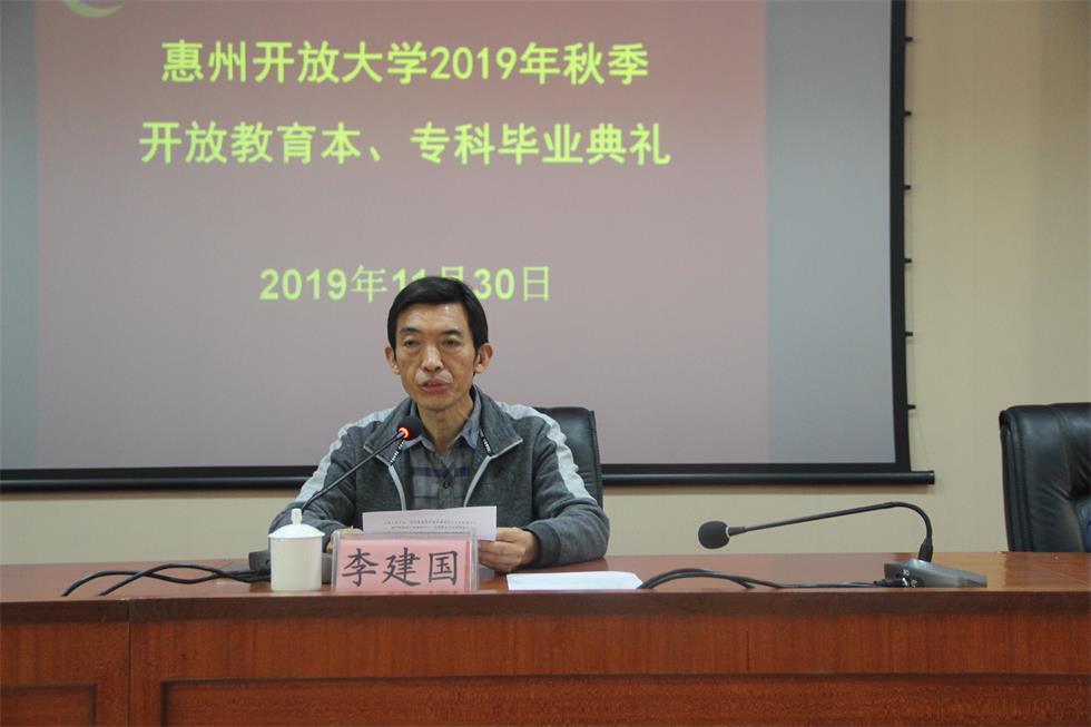 11月30日上午,我校举行2019年秋季开放教育毕业典礼。副校长李建国出席典礼,相关科室负责人、各班班主任、220名开放教育毕业生参加典礼。 随着雄壮的国歌奏响,毕业典礼拉开了序幕。李建国副校长向顺利毕业、圆满完成学业的毕业生表示热烈祝贺,向同学们利用业余时间不断提升自我的求学精神点赞。他向同学们提出了三点希望:一是用梦想点燃生活的激情,在工作中找准方向、脚踏实地、迎难而上,争做新时代里勇敢的追梦人。二是关心善待身边的人和事。要做到对美好事物和大自然的感动之心、善于体贴他人的亲切之心、志愿服务社会的奉献之心,体现当代电大毕业生对社会、对人民的责任情怀。三是将学习贯穿终身。以毕业为新的起点,勤奋学习、恒久学习,不断优化知识结构,提高自身综合素质,改善生活品质,以终生学习丰富人生底色。