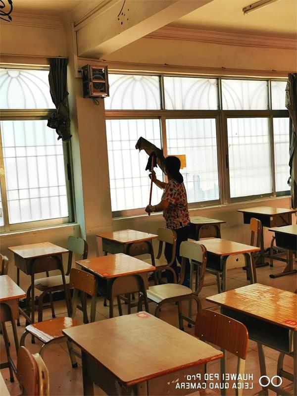 为统筹推进新冠肺炎疫情防控,营造洁净的校园环境,做好学校复学复课相关准备工作,确保师生的生命安全和身体健康,5月3日,总务科协同深圳宝晨物业公司的52名工作人员对校园内所有区域开展了全方位消毒和卫生大扫除工作。