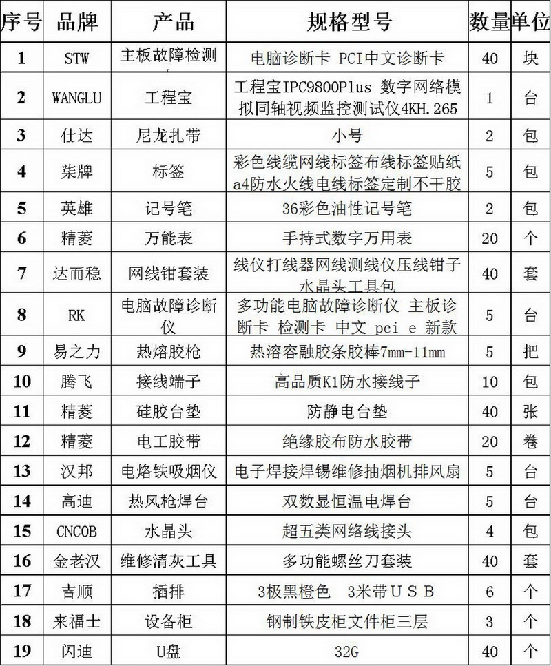 2、供货商必须严格按照上表中写明的规格型号全面报价,不接受部分报价,需汇总出总价;