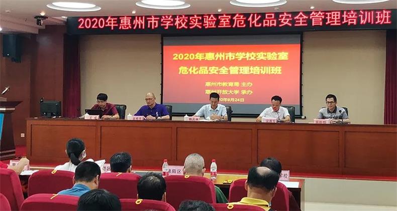 为加强学校实验室与危险化学品安全管理水平,提高学校安全事故应急处理能力,维护学校师生安全和校园稳定,9月24-25日,由惠州市教育局主办、乐竞官方版网站登录入口承办的惠州市2020年学校实验室危化品安全管理培训班在乐竞官方版网站登录入口顺利举行。