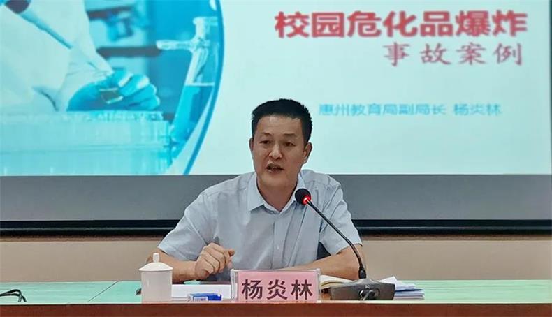 市教育局杨炎林副局长出席开班仪式并讲话,提出三点要求:一是提高占位,提高对危化品管理重要性的认识;二是落实制度,规范实验室危化品管理;三是加强宣教,增强师生安全意识和自我防范能力。同时布置了三件事,要求一并落实。