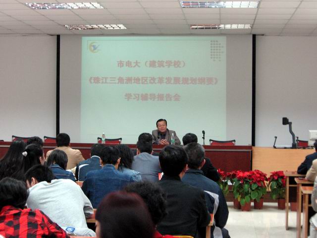 3月11日下午,惠州电大邀请市委党校常务副校长黄石松作《珠江三角洲地区改革发展规划纲要》辅导报告。全校教职工认真听取了报告会。