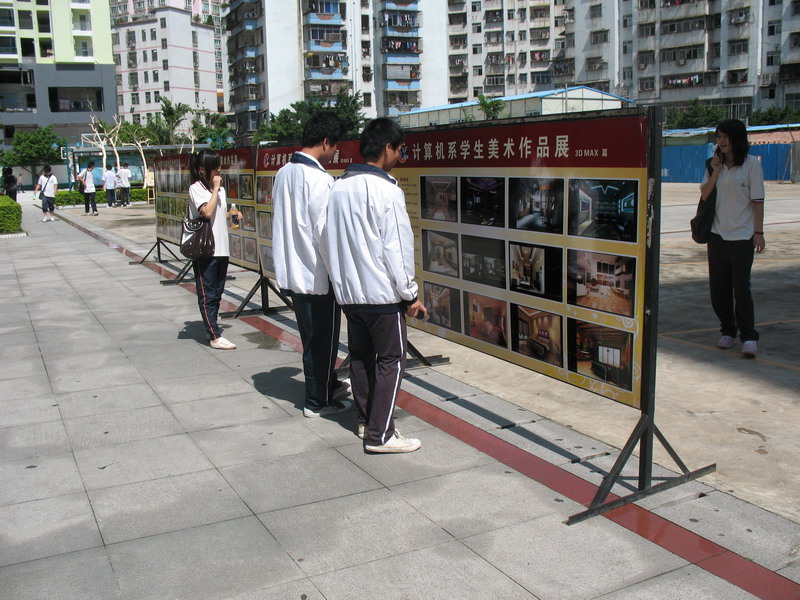 为了提高学生的专业学习兴趣,激发学生的学习热情,检验学生的学习效果,我校计算机系于6月25日开始举办了“学生美术作品展”。作品主要来自于本系学生的平时作业,一经展出,吸引了众多同学和老师驻足欣赏。