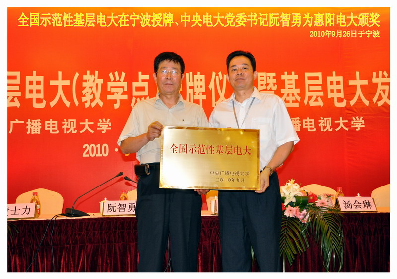 9月26日至27日,中央广播电视大学“全国示范性基层电大(教学点)”授牌仪式暨基层电大发展论坛在浙江宁波隆重举行。作为第二批全国示范性基层电大,惠阳广播电视大学捧回了金灿灿的“全国示范性基层电大”荣誉牌匾。