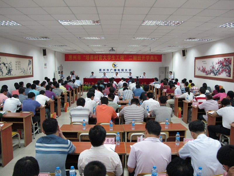 陈训廷部长作重要讲话,他说,二期班开学典礼,标志着我市培养村官大学生工作迈上一个新的台阶。一年来,各级组织部门精心组织、周密部署,电大、财政等部门分工协作、扎实推进,全市“培养村官大学生工程”取得了明显的成效。陈部长代表市委、市政府向各有关部门特别是广播电视大学系统的教职员工表示感谢,向第二期班的全体学员表示祝贺。陈部长提出三点意见。一是“培养村官大学生工程”开局良好,成效明显。提升了农村党员干部队伍的整体素质;营造了创先争优的良好氛围;促进了农村科学发展。二是要进一步提高办学成效,打造惠州基层党建工作名牌。要进一步强化组织领导;要进一步抓好教学管理;要进一步加强宣传引导。三是带头创先争优,全面提高村官队伍的整体素质。要带头勤奋学习,争当提高素质的表率;要带头发展经济,争当致富带富的表率;要带头执行政策,争当依法办事的表率;要带头排解纠纷,争当维护稳定的表率;要带头倡导文明,争当弘扬新风的表率。