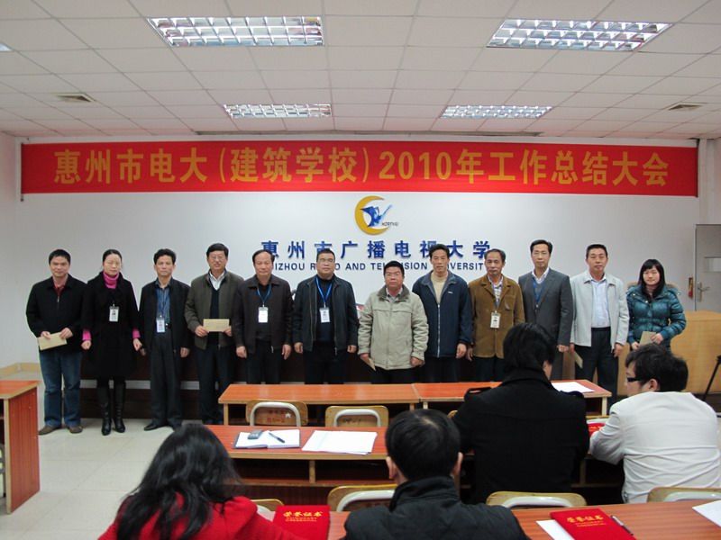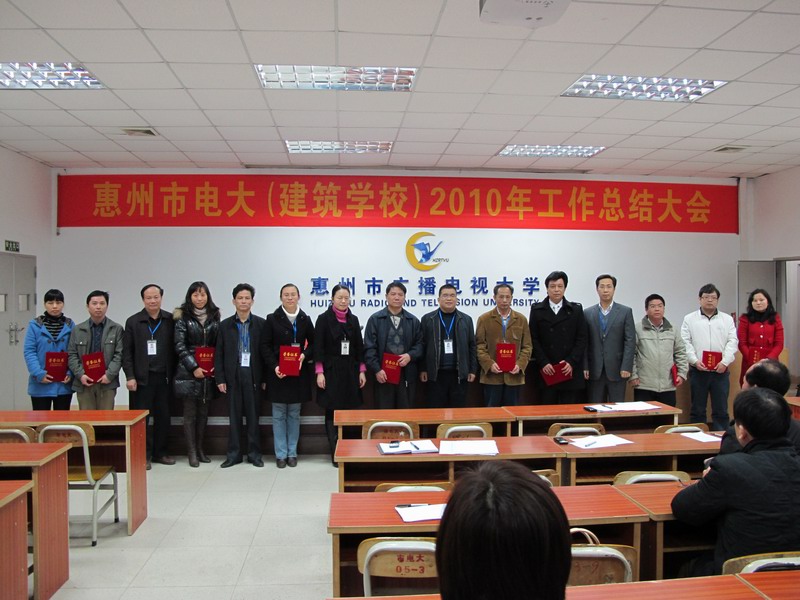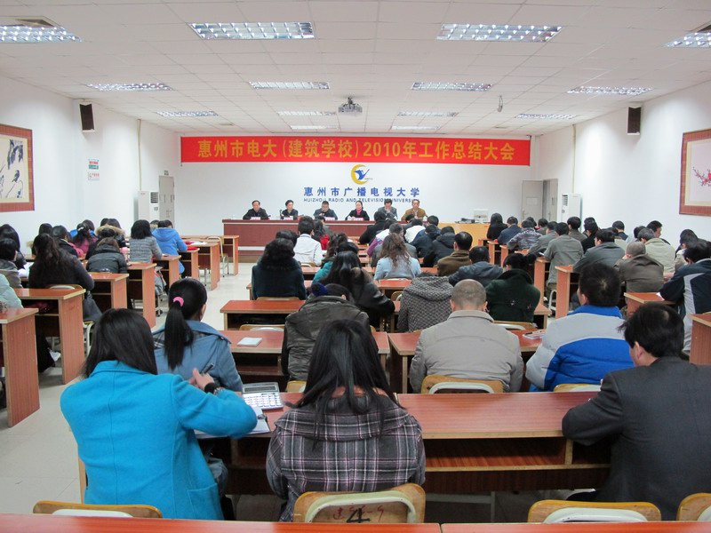 吴汉朋校长代表领导班子作2010年学校工作总结。2010年,我校在市委、市政府的正确领导和省电大的指导下,继续加大改革力度,强基础,促发展,办学规模稳步增长,内部活力不断激活,基础设施日益完善,服务功能全面拓展,系统建设得到加强,品牌形象迅速提升。总投资达3000万元的新教学大楼已部分投入使用,成为惠州市直学校和我省地市级电大的标志性单体建筑之一;全市电大系统招生规模2010年再次列全省地级市第一;与市委组织部联合推出的“培养村官大学生工程”二期顺利招生;由市委组织部、市电大联合推出的“社区干部素质提升工程”已经启动;以全省总分第一名入选全国示范性基层电大候选名单;办学知名度和社会影响力进一步大幅度提升。总结起来,2010年的主要工作表现在“十二个强化”,取得了“十二个新跨越”:强化学习调研,在队伍素质提升上取得了新跨越;强化基础设施建设,在改善办学条件上取得了新跨越;强化队伍建设,在打造优秀团队上取得了新跨越;强化服务意识,在构建学习型城市和终身教育体系上取得了新跨越;强化安全维稳工作,在建设安全校园上取得了新跨越;强化改革创新,在激活内部生机活力上取得了新跨越;强化宣传策划,在扩大电大影响力上取得了新跨越;强化党群工作,在党风廉政建设上取得了新跨越;强化制度建设,在规范内部管理上取得了新跨越;强化教育教学管理,在提高教学质量与水平上取得了新跨越;强化校园文化建设,在提高学校软实力上取得了新跨越;强化市县电大联动,在提高系统合力上取得了新跨越。