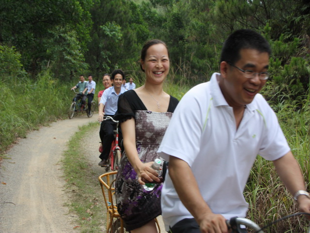 当天下午,风和日丽,工会首先组织寿星们到红花湖景区开展踩双人自行车环湖游。大家自由分组,配合默契,奋力前行,一路欢声笑语。经过近两小时的辛苦“飞驰”,大家顺利完成了23公里“红花湖环湖双人自行车友谊比赛”,沿途的青山绿水、鸟语花香、迷人景色留在了相机里,更留在了每一位寿星的脑海里。环湖游结束后,举行了简朴的生日晚宴,一个精致的生日蛋糕满载祝福,呈现在众人面前,大家点蜡烛、唱生日歌、许下美好心愿、品尝甜美的蛋糕,共同度过一个特别的生日派对。作为本月寿星之一的吴汉朋校长也参加了整个活动,他和大家打成一片,一起“赛车”,一起流汗,一起欣赏美丽的湖光山色,增进了解,共同体验骑车环湖锻炼和集体过生日的情趣。