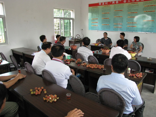 紧接着,吴汉朋校长一行在惠东县电大陈天送校长、刘民权副校长的陪同下驱车前往扶贫挂点村——惠东县多祝镇明溪村开展调研,受到多祝镇领导和挂点村——明溪村“两委”干部的热情欢迎。学校、镇、村三方领导和有关人员在村委会举行了座谈会。座谈会由多祝镇何副镇长主持。明溪村村委书记、主任毛新梅代表全村对我校挂点半年来先后投入近5万元经费慰问困难群众、支持村水利建设和完善村委办公设施等表达了衷心的谢意,并通报了该村近期的发展情况以及遇到了一些问题。她还赞扬了我校驻村干部黄耿聪同志的工作表现,该同志被惠东县委组织部评为2008年优秀驻村干部。