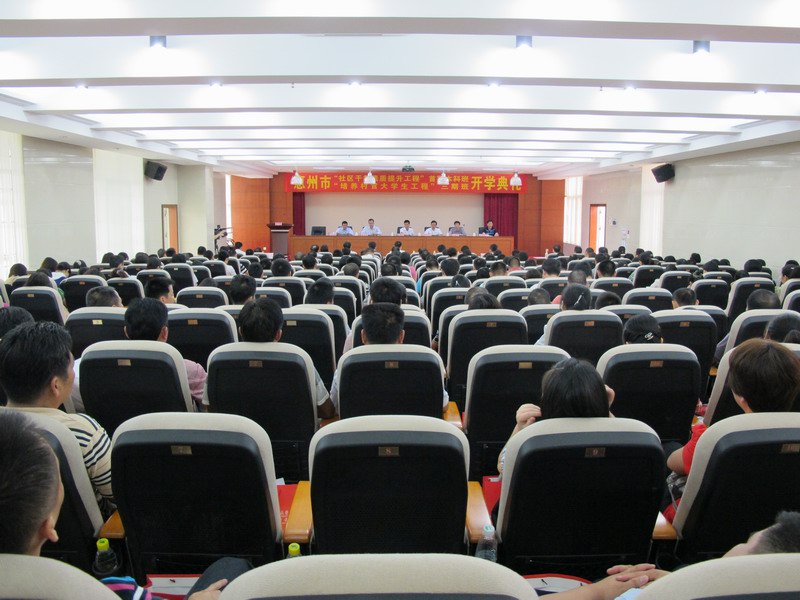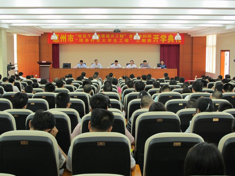 市政府党组成员、市长助理范中杰作重要讲话。他说,惠州市“社区干部素质提升工程”及“培养村官大学生工程”是惠州基层党建工作的两大创新。近年来,各级组织部门和电大通力合作,精心组织,财政等部门积极支持,全市“培养村官大学生工程”、“社区干部素质提升工程”取得了明显的成效。范中杰代表市委、市政府向各有关部门特别是广播电视大学系统的教职员工表示感谢,向两大工程的全体学员表示祝贺。范中杰提出三点意见。一是“两大工程”组织有力,进展顺利,效果显著,提升了农村党员干部队伍的整体素质。二是要进一步提高办学成效,打造惠州基层党建工作名牌和电大办学品牌。三是带头创先争优,全面提高村官队伍的整体素质。