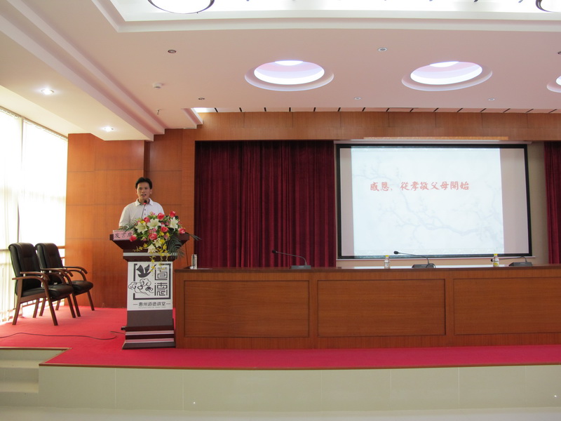 启动仪式后,惠州电大招生科副科长黄叶泉老师作了“感恩,从孝敬父母开始”主题讲座,他从什么是孝、为什么要孝、孝的类型以及如何尽孝四个方面详细介绍了中国的孝文化,对“百善孝为先”的观点进行了深刻的阐述;结合古今中外孝子的孝亲故事,引导学生学会感恩父母,感恩社会。讲座内容丰富,深入浅出,效果显著。