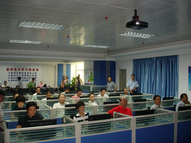 刘耀辉主席一行在市政协科教文卫体委员会副主任、惠州电大吴汉朋校长,副校长范慧新、陈玲明、杨祖武等校领导的陪同下参观了学校的服务大厅、教职工活动中心、“学习信息港”等,在“学习信息港”体验浏览了惠州市“惠民终身学习网”,观看了“盛开的电大教育之花”宣传片,并在我校教职工活动中心参加了由市政协科教文卫体委员会和我校联合举行的“庆贺罗玉通为家乡惠州夺得史上首枚奥运金牌”委员活动日活动,还进行了乒乓球友谊赛等活动。