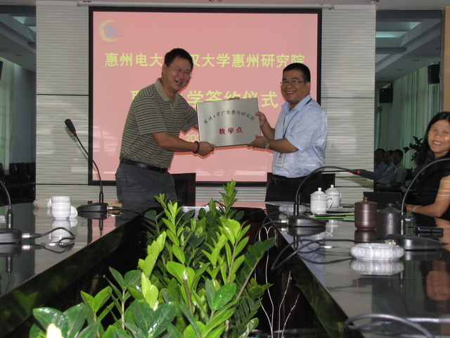 7月8日,惠州电大举行与武汉大学惠州研究院联合办学签约仪式,这标志着惠州电大与武汉大学惠州研究院的合作正式启动。惠州电大以举办现代远程开放本、专科教育和各类职业培训为主,是惠州构建终身教育体系和学习型社会的骨干力量和重要支撑之一,为惠州经济社会发展培养了大批“留得住、用得上”的实用型技能人才。这次与名牌高校“联姻”,为广大求学者提供了更多成才选择。根据协议,武汉大学在我校设立硕士研究生教学点,2009年7月起,招生工商管理硕士(MBA)、公共管理硕士(MPA)、会计硕士(MPAcc)三个专业。双方领导均表示,要发挥各自教育资源优势,通过开展硕士研究生层次的联合办学,共同为惠州教育事业和高学历人才培养工作做出更大贡献。