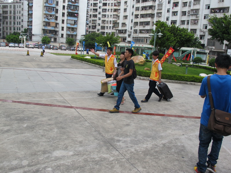在这两天的时间里,来自省内外四面八方的学子陆陆续续来到学校报到。准备已久的学生志愿者们在班主任的指导下当起了“小导游”,热心地帮助新生们办理各种手续,介绍学校情况,安顿住宿等。老师、学生志愿者的笑容中洋溢着对新生的热情,新生的脸上流露着对学校的感激……所有这些让那些从未离开过父母身边的学生感觉到特别的温暖,学生家长更是赞不绝口。校园内充满了欢声笑语。