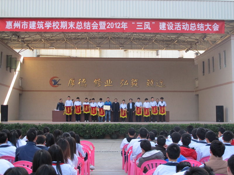 会上,市电大副校长、建筑学校校长陈玲明同志作市建筑学校期末总结发言,并对期末考风考纪及假期安全教育作重点强调。他对2012—2013学年第一学期中专教育教学活动的开展情况进行了系统梳理概括,充分肯定了本学期在扎实推进“三风”专项建设、安全宣传教育、实践技能教学、班级日常管理、学籍教务工作等方面取得的显著成效,鼓励广大师生总结经验,发扬成绩,正视不足,为实现学校下一阶段发展目标,共建和谐校园共同努力。陈玲明副校长宣布了本学期《惠州市建筑学校关于表彰先进集体和优秀个人的决定》,学校领导对先进集体和优秀个人进行了颁奖。