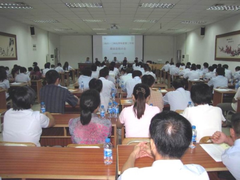 吴汉朋校长对学校09年上半年工作进行了总结。他说,在市委、市政府、市教育局的正确领导下,在省电大的直接指导下,全体教职工齐心协力,扎实工作,学校各方面工作顺利开展,取得了有目共睹的成绩。第一,基础设施建设取得新的进展。一是完善了服务大厅、会议室、电脑房,并对每个课室进行了装修和美化,整个校园面貌焕然一新。二是新教学大楼工程稳步推进。三是改善了教师办公条件。第二, 安全工作得到较好保障。第三,招生工作取得较好的成绩。在面临金融风暴冲击的严峻形势下,我校仍取得春季招生828人的好成绩(全市电大系统招生2500人)。第四,学习交流与合作取得新的成效。一是组织有关人员到省内外部分电大学习考察。二是我校成为武汉大学惠州研究院教学点,并与香港大华教育中心合作开展外语培训。第五,宣传力度逐步加强。建立了惠州电大系统信息员队伍。在报纸、电视台等媒体都加大了宣传力度。成功创办了校刊《惠州电大教育》,已发行两期。逐步提高了电大品牌知名度。第六,“村官大学生培养工程”成为全省乃至全国的工作亮点。市委组织部、市电大联合实施的“村官大学生培养工程”顺利启动。中央电视台、南方日报、惠州日报等中央、省、市级媒体对此作了深度报道,中央电大时讯网也有专题报道。目前,各县区的招生报名工作已经结束,“工程”反响非常好。第七,内部改革创新迈出了新步伐。成立了麦地校区和环城西校区管理处以及系(部)业务管理机构。市编委已下发文件,明确市电大升格后的校领导职数、行政科室、中层职数。开放教育招生新开了农村行政管理、土木工程等新专业。人事分配体制改革方面也有新举措。第八,教学科研与教务管理工作取得新的成绩。我校有两个科研项目完成结题,其中一项为中央电大资助项目,一项为市社科项目。师资队伍水平进一步提高。今年上半年我校又有三位教师获得硕士学位,一位教师考上会计学博士。学校初步形成了一支师德好、素质高、结构合理、群体优化、富有活力的师资队伍。第九,构建和谐电大不断推出新举措。一是按照上级文件精神,结合学校实际,从今年7月起上调教职工住房公积金的缴交基数。二是加强聘用人员管理,为本校聘用人员办理人事关系代理。三是加强与退休教职工的联系。召开退休教职工座谈会。四是坚持举办生日聚会,增进同事间的感情。五是组织全体教职工包括临时工进行体检。六是提高了临时工待遇。这些举措,进一步提高了教职工幸福指数。第十,中专学生管理工作效果比较明显。组织开展了“每月爱国卫生大行动”、“纪律教育月”、“法制教育月”、“文明礼貌月”等活动,中专学生素质有了明显提高。