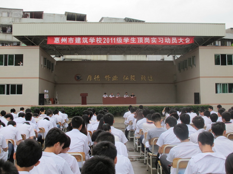 会议期间,建筑学校副校长杜剑山解读了《惠州市建筑学校2011级顶岗实习相关事项通知》,顶岗实习学生作代表发言。此次顶岗实习动员大会圆满完成了各项议程,进一步明确了顶岗实习的要求,加强了顶岗实习的指导,鼓舞了同学们的士气,为更好地完成顶岗实习任务奠定了基础。(实习就业部供稿)