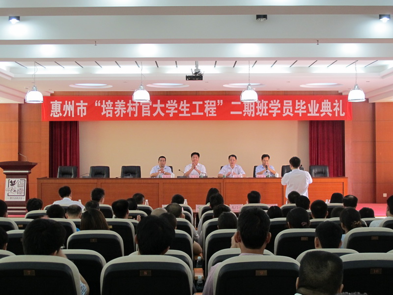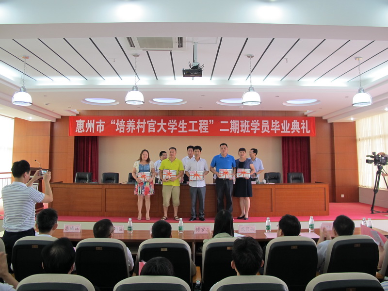 毕业典礼上,与会领导为毕业学员代表颁发了毕业证书,党的十八大代表,汝湖镇南新村书记陈杏芬同志作为学员代表进行了发言,并举行了市电大二期“村官班”向母校捐赠图书仪式。