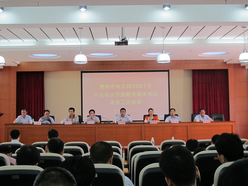 会上,考务工作负责人对2013年7月开放教育考试工作考务安排作了说明,组织全体监考人员学习《监考人员工作守则》、《惠州市广播电视大学全国统一考试工作流程》以及《地域文化课程监考要求》,明确监考职责与纪律。