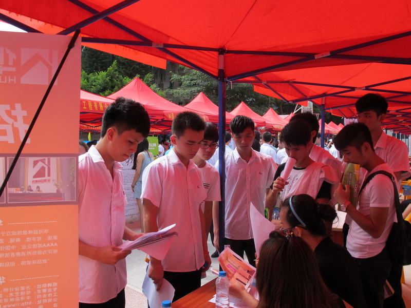 毕业供需推介会现场十分热闹,招聘摊位前门庭若市,凭着市建筑学校的品牌优势以及专业优势,一个上午多数学生就被企业选聘。此次前来招聘的企业达150多家,遍及本地、珠三角及粤东地区,有惠州市建设集团、建筑工程总公司一大批知名企业驻场,提供了包括建筑施工管理、工程监理、建筑装饰、室内设计等几十个工种1000多个职位供学生选择。