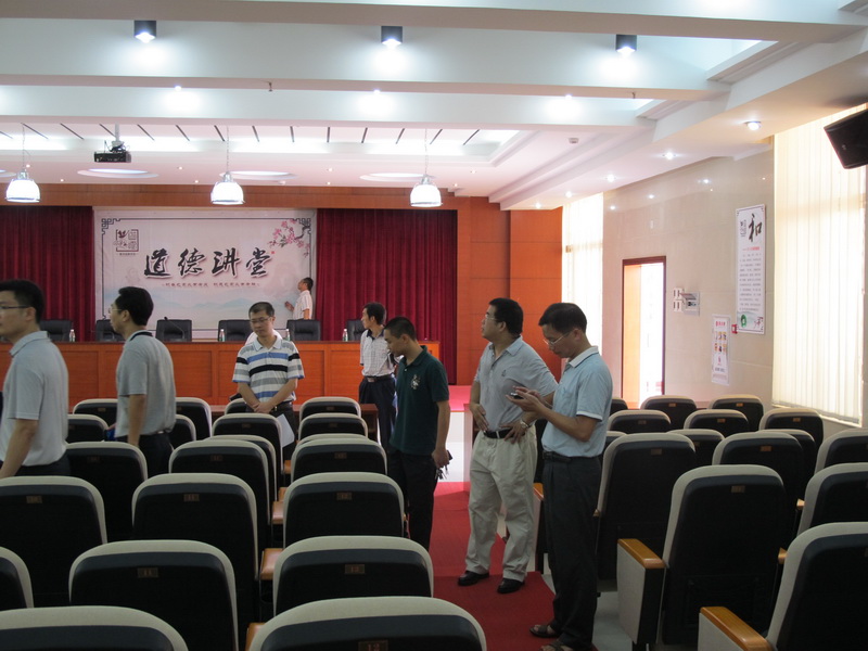 惠州市迎接2013年全国文明城市及未成年人思想道德建设工作测评进入冲刺临检阶段,近日,惠州电大校长、党委书记吴汉朋带领学校中层以上干部、迎测评工作人员对活动开展、材料归档、校园环境卫生、迎评氛围创建等各项内容,逐项进行了地毯式督查,确保不留死角。