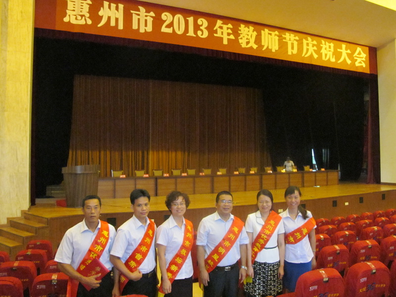 在日前惠州市委市政府隆重召开的2013年教师节庆祝大会上,惠州市电大校长、党委书记吴汉朋同志被评为“惠州市明星校长”,是全市今年唯一获此殊荣的校长,学校范慧新、黄叶泉等6位同志分别被授予“优秀教育工作者”、“首席教师”等荣誉称号。