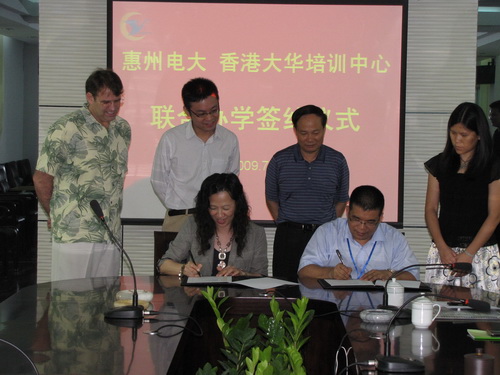 7月8日,惠州电大与香港大华教育中心举行联合办学签约仪式,主要合作外语培训业务。双方领导均表示,这项合作能够更好的发挥各自的教育资源优势,进一步提升社会服务功能。