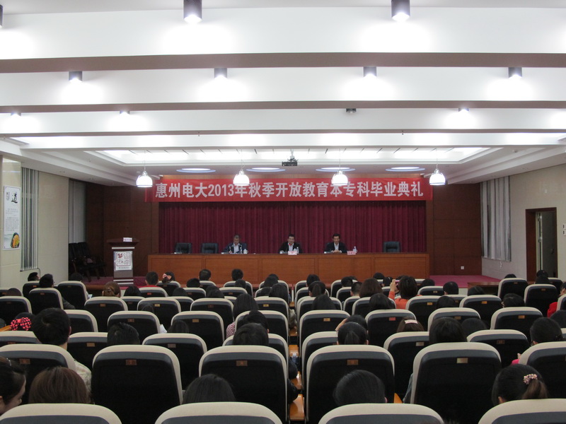 吴汉朋表示,当前国务院确定以电大为主体举办开放大学,基层电大将迎来更广阔的发展天地。在办学转型升级的关键机遇期,惠州电大将着力推进开放教育、职业教育、培训教育、社区教育、成人教育、网络教育“六大事业部”,努力打造惠州电大办学转型升级版,将惠州电大打造成为全市社区教育指导服务中心、全市继续教育和终身教育的主阵地、构建学习型社会的重要基地、全国电大向开放大学办学转型升级的排头兵,学校的前景将会更加美好,希望毕业生关心支持惠州电大发展。