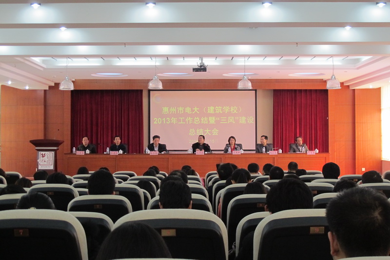 惠州电大校长、党委书记吴汉朋作重要讲话,他指出,惠州电大一年来认真学习贯彻党的十八大精神和十八届三中全会精神,坚持“做大做强电大教育、做精做特建筑中专”的发展思路,攻坚克难,把握机遇,务实进取,在办学规模、办学质量和办学效益等方面走在了全省乃至全国同级电大前列。