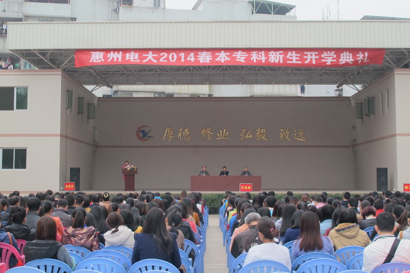 惠州电大副校长李建国作重要讲话。李副校长代表学校向678名春季班新生表示热烈欢迎,并向同学们简单介绍了电大的办学情况和特点:伟人所创,改革开放总设计师邓小平亲自倡导创办;办学定位明确,面向职业人的高等教育,实现教育公平,推动高等教育普及化;规模日趋扩大,中央电大为龙头,省、市、县各级电大共同构筑世界最大的远程教育体系,其学历证书得到国内外承认,被誉为“国际学历绿卡”;创新教学管理、支持服务、系统运作等机制,有效保证人才培养质量;毕业生达900多万,遍布各行各业,影响更加广泛。