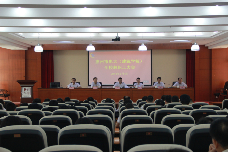 6月4日,惠州市电大(建筑学校)在综合楼十二楼多功能报告厅召开全校教职工大会,总结本校近期主要工作情况,并对群众路线教育实践活动查摆问题、开展批评环节等工作开展进行动员部署。会议由市电大副校长杨祖武主持,全校教职工参加会议。
