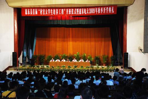 惠东县委常委、组织部部长朱向阳同志代表县委、县政府讲话。他指出,惠东县首届“村官大学生培养工程”是惠东全面加强党的基层组织建设和社会主义新农村建设的重要举措,具有十分重要的意义。要求惠东电大作为承办学校必须要加强管理,抓好教学质量,确保“工程”取得预期成效。