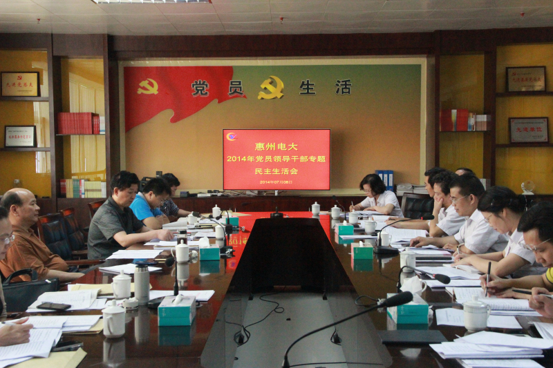 根据市委开展党的群众路线教育实践活动的统一部署和工作安排,7月8日,惠州市电大在综合楼十楼党员活动室召开了2014年党员领导干部专题民主生活会。学校校长、党委书记吴汉朋,副校长范慧新、陈玲明、杨祖武、李建国参加了会议,工会主席、其他非领导班子的党委委员列席会议。市委第二十二督导组全体成员到会指导。