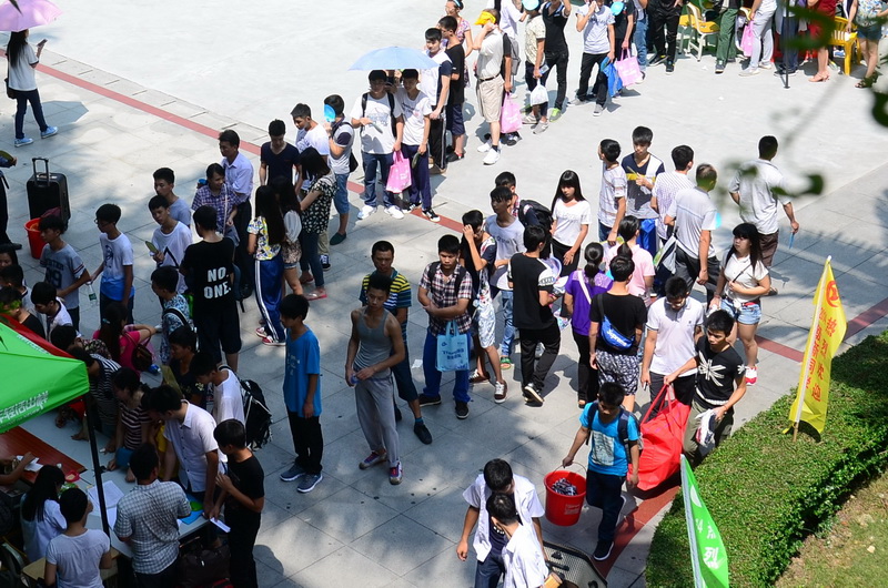 9月10日,在迎来我国第30个教师节的同时也迎来了我校2014级820名新生。 为了做好迎新工作,学校组织开展了2014级班主任岗前培训,志愿者培训。当天,班主任、志愿者以及有关工作人员积极引导学生家长和学生办理新生入学手续,秩序井然有序,有的负责引导工作、有的帮忙搬行李、有的为新同学介绍学校情况,成为了校园里一道亮丽的风景线。他们似火的热情、认真负责的工作态度,得到了新生家长们的肯定和同学们的赞扬。(团委供稿)