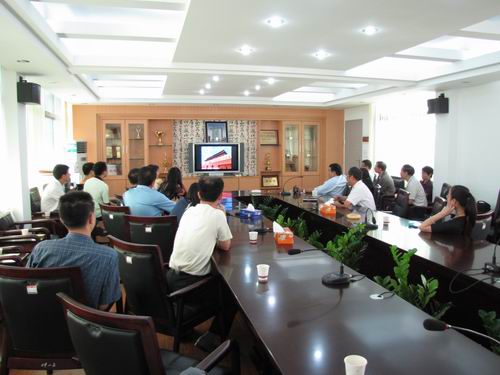 10月1日上午,惠州电大领导、中层干部和系部负责人在会议室集中收看庆祝中华人民共和国成立60周年大会现场直播。