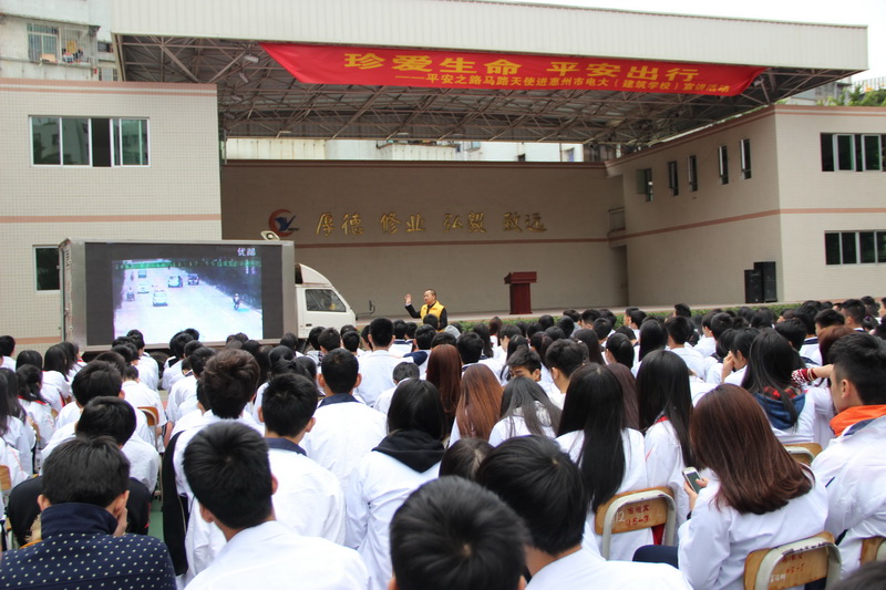 殷革新由亲身经历过的交通事故出发,引用了大量的视频、图片,告诉同学们日常的交通恶习带来的血淋漓的教训,引导广大师生遵守交通规则,做文明使者。